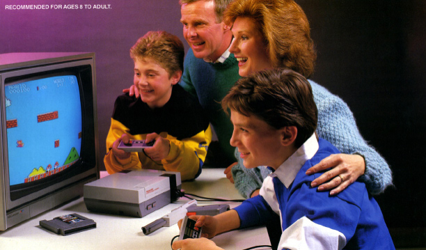 Japanska fyrirtækið Nintendo kom leikjatölvuiðnaðinum aftur á rétta braut með vinsælli leikjatölvu og frumlegum leikjatitlum. Hrun iðnaðarins varð til þess að fyrirtæki (t.d. Atari og Celeco) þurftu að snúa sér frá iðnaðinum og opnaðist því tómarúm fyrir ný fyrirtæki. Nintendo hafði áður gefið út Game & Watch sem var einskonar ferðatölvuspil með einum innbyggðgum leik. Leikjatölvan Famicom (stóð fyrir Family Computer, eða fjölskyldutölva) kom út í Japan 1983 og þóttu Nintendo djarfir í hönnun hennar, t.d. voru stjórntæki leikjatölvunnar allt öðrvísi en fólk hafði áður vanist. Tvö stjórntæki sem fylgdu vélinni voru með sína séreiginleika. Nr. I var sú týpa sem flestir þekkja í dag, flatt stjórntæki með átta- og tveim aðgerðartökkum. Nr. II var með hljóðnema og gat spilarinn hrætt burt skrímsli með því að öskra í hann í tölvuleiknum Legend of Zelda, og í japanska leiknum Takeshi No Chousenjou þurfti leikmaður að syngja í hljóðnemann. Slíka notkun á hljóðnema þekktist ekki í tölvuleikjum fyrr en mörgum árum síðar. Jafnvel útlit tölvunnar var djarft og óhefðbundið, hún var hvít og rauð með gylltum skreytingum. Nintendo Famicom var einungis fáanleg í Japan og hafði selst þar í mörgum milljónum eintaka, árið 1985 kom leikjatölvan á bandarískan og evrópskan markað og fékk nafnið; Nintendo Entertainment System (NES). Útliti tölvunnar var breytt fyrir nýjan markað – grá og svört með rauðu ívafi. Dreifing og vinsældir NES varð til þess að hún varð söluhæsta leikjatölvan. Margir leikir NES eru enn vel þekktir í dag, t.d. Super Mario Bros., Castlevania, Zelda og Final Fantasy. Aðalhetja leiksins Super Mario Bros. var pípari að nafni Mario, fenginn úr Nintendo leiknum Donkey Kong. Píparinn Mario varð að lukkudýri Nintendo og þeirra sérkenni og er það enn.