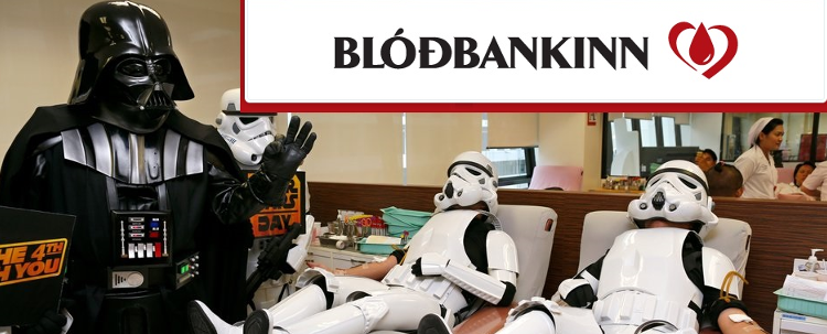 Í dag, 4. maí, er Stjörnustríðsdagurinn og að því tilefni ætla meðlimir í 501st deildar á Íslandi í samstarfi við Blóðbankann að halda blóðsöfnun. Fyrir þá sem ekki vita þá eru 501st alþjóðleg búningasamtök og geta aðeins þeir sem eiga Star Wars búning illmenna úr myndunum frægu gerst meðlimir í samtökunum. Með þessu framtaki vill deildin hvetja allt Star Wars áhugafólk til að mæta og gefa blóð á þessum degi.