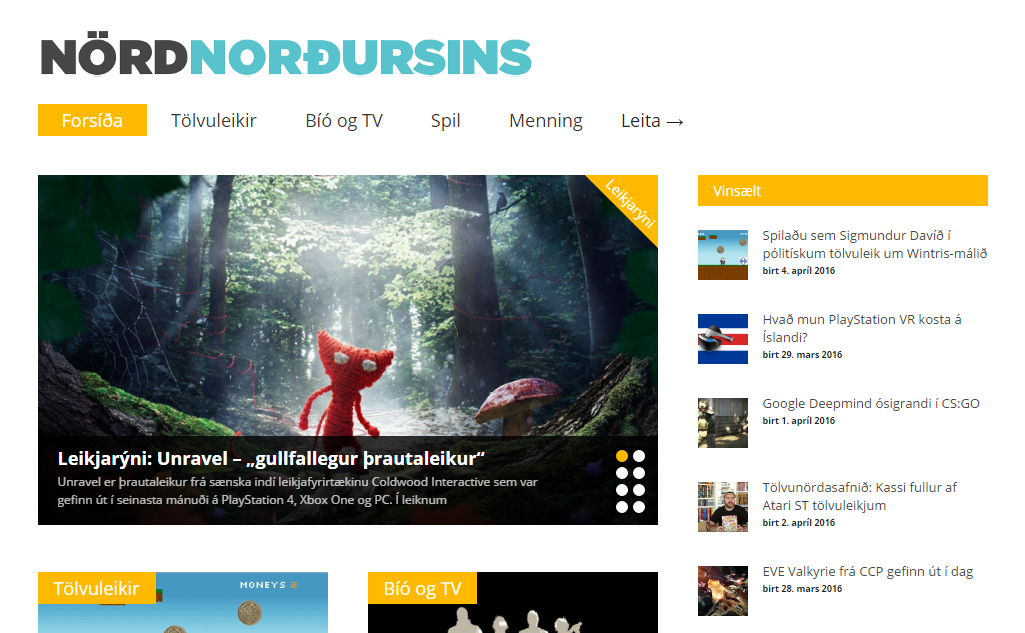 Heimasíða Nörd Norðursins hefur fengið nýtt útlit! Undanfarna daga hefur verið unnið að því að setja upp nýja útlitið og er það að mestu tilbúið. Lesendur eru beðnir velvirðingar á þeim truflunum sem hafa átt sér stað á þessum tíma. Með nýja útlitinu fylgja ákveðnar breytingar og hefur flokkurinn Bækur og blöð verið færður yfir í flokkinn Menning. Aðalflokkar síðunnar sjást hér fyrir ofan og eru: